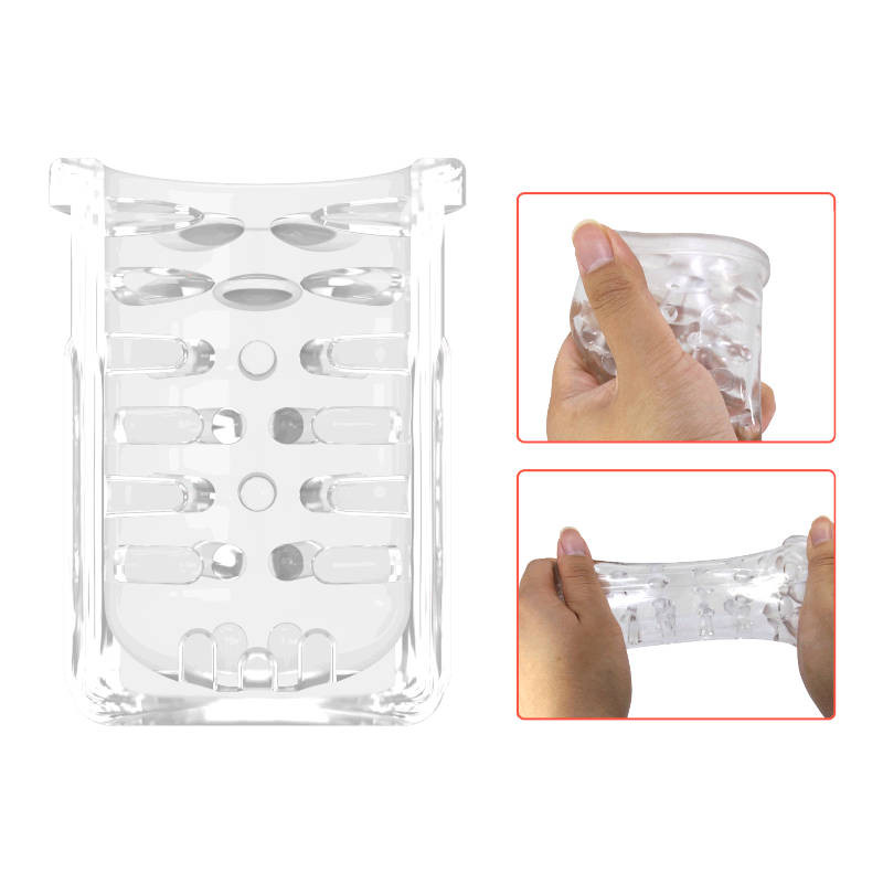 Внутри расположен подвижный 3D-туннель из супер эластичного TPR материала с выпуклой текстурой. Двигаясь поступательно и одновременно совершая вращательные движения, он обеспечивает интенсивную стимуляцию по всей длине пениса.