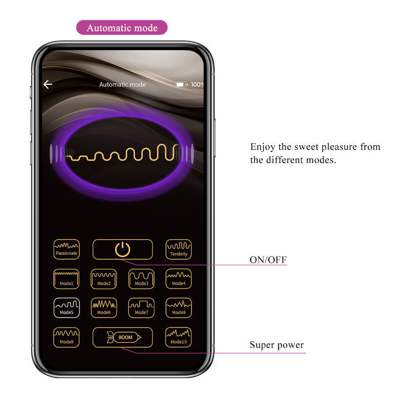 AUTOMATIC MODE - в меню режимы вибрации доступны в виде отдельных кнопок, что позволяет удобно выбирать их в произвольном порядке;