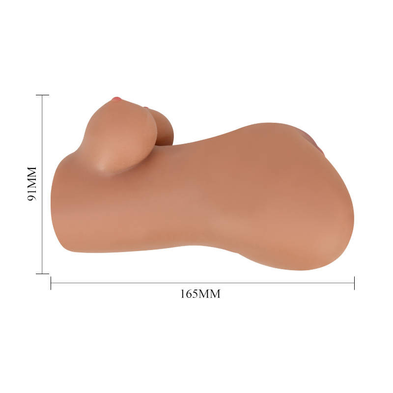 Компактний мастурбатор у вигляді жіночого міні-торса смаглявого кольору з повними грудьми, вагіною та анусом. Два входи ведуть до внутрішніх тунелів з різною довгою та внутрішньою формою. Як тільки ви увійдете в будь-яку з цих спокусливо вузьких дірочок, ви відчуєте чудову внутрішню текстуру, яка стимулюватиме і масажуватиме пеніс від кінчика вщент. Ви можете стискати мастурбатор, щоб вагіна та анус стали ще щільнішими.