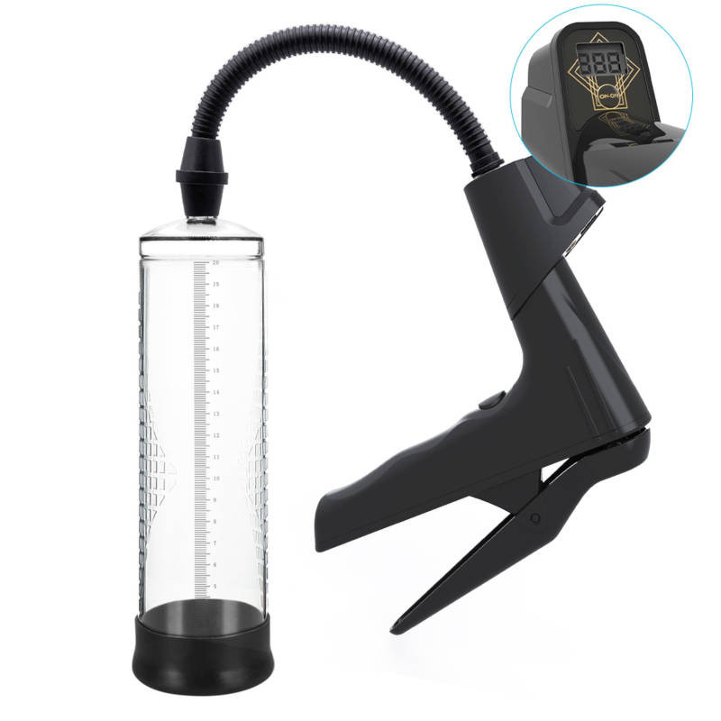 Чоловіча помпа з цифровим дисплеєм та пістолетним насосом. Створена для чоловіків, які бажають збільшити розмір пеніса та посилити ерекцію, насолоджуючись комфортом та безпекою.